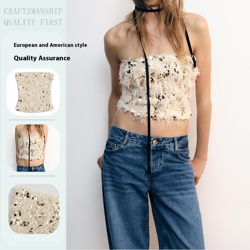 Beads Decoration Frayed European And American Retro Short Waist Seal